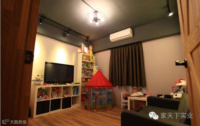 天花板保留公共空间设计语汇,另外让小朋友的童趣玩具妆点活泼风格。