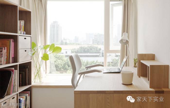 拆除铁窗后的书房拥有无遮蔽的日光绿景,加上临窗区卧榻平台,小憩或阅读都很惬意。