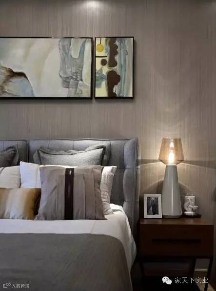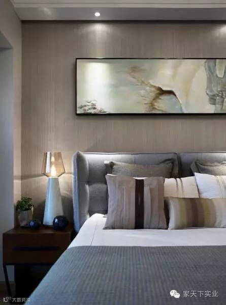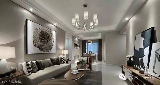 客厅淡雅的灰色调在柔和的灯光下温润如玉,质感动人。给人典雅舒心之感。