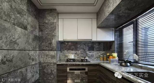 厨房灰色的石质背景墙,给人一股怀旧之感。