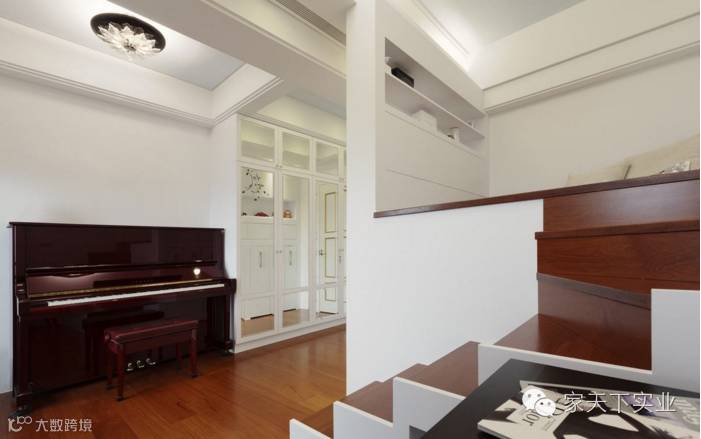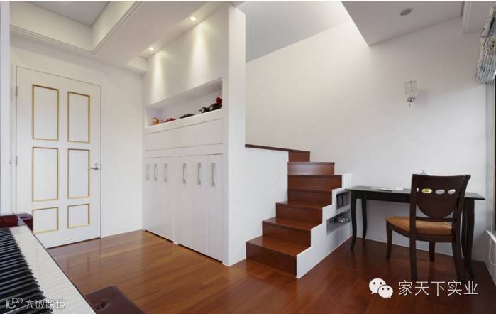 屋主女儿一直憧憬能住在楼中楼,因此设计师特别把睡眠区独立起来,实现上下分层的大胆设计。