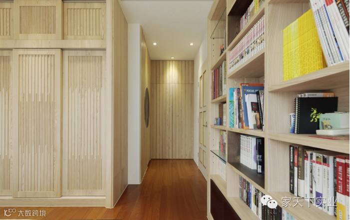屋主惯用精装版本保护照片及收藏,因此在书房的开放式书柜,特别量身订制尺寸大小,以便能如数收纳。