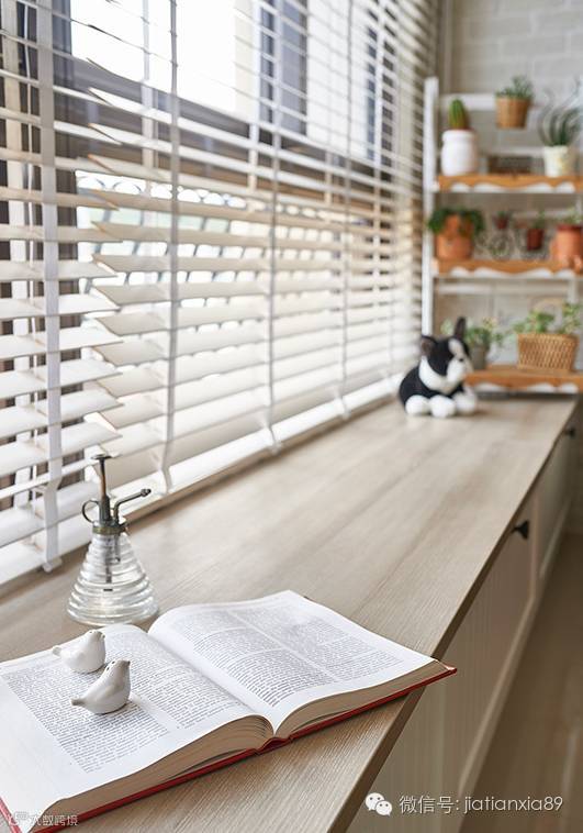 从日本带回来的绿意植栽装饰在窗边卧榻处,植入乡村小镇惬意、悠闲之意。