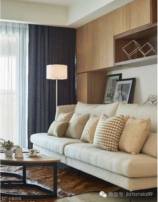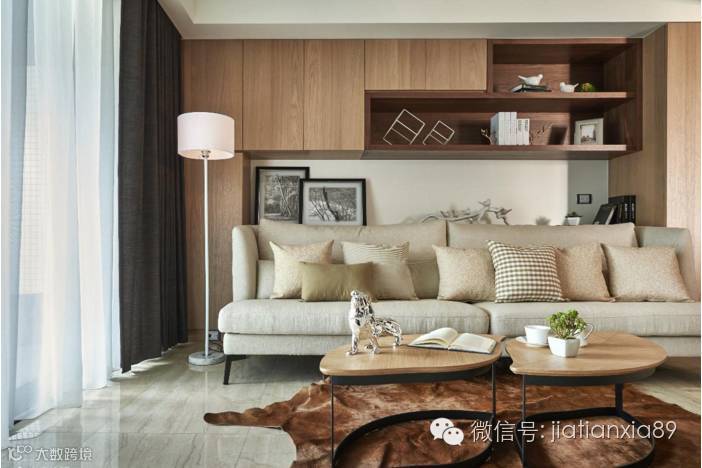 设计师利用木纹铺陈一室,加上温润色系的物件安排,让空间充满清新、简约的气息。