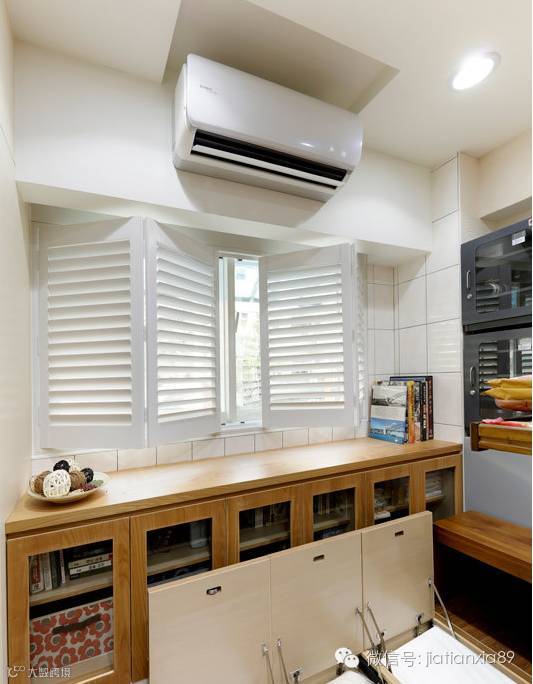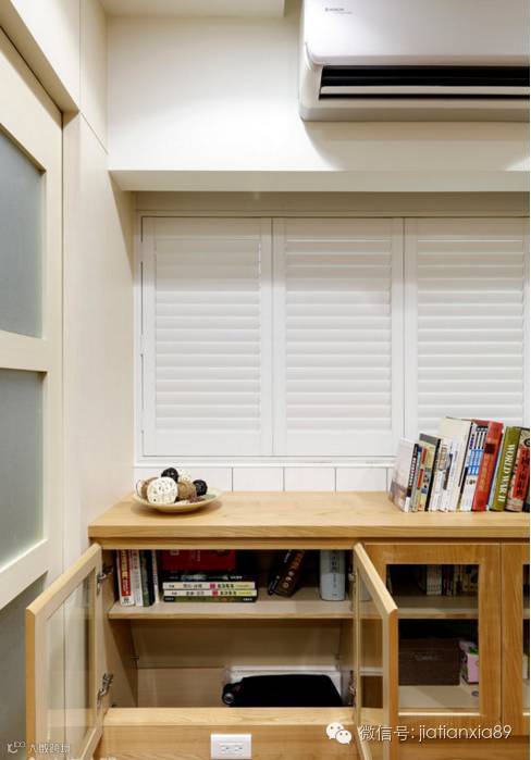 窗下的矮柜兼有藏书的功能,设计师并于下方设置暗柜,充分利用架高空间。