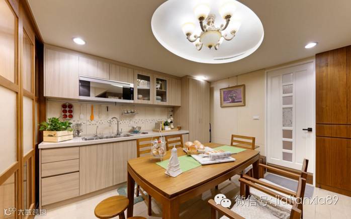 由于小空间的限制及屋主需求,和峯设计团队将公共空间的客、餐厅结合,以开放型态让尺度拉到最大,并透过不断地审视,让居宅表情同时演绎屋主的兴趣及生活,例如在餐厅旁规划一区烘焙空间,让屋主可以在闲暇之时与同好一起切磋厨艺、制作幸福满满的面包与甜点。