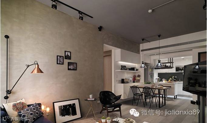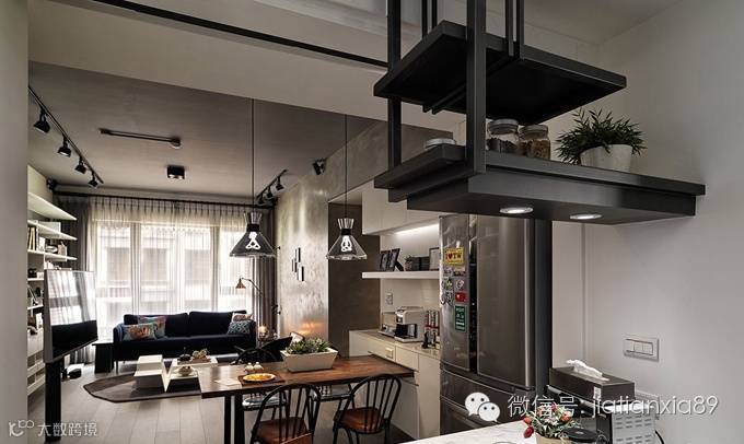 屋主夫妇期待的现代工业风,设计师以深色调为基础,点缀有设计感的物品,增添品味和质感。