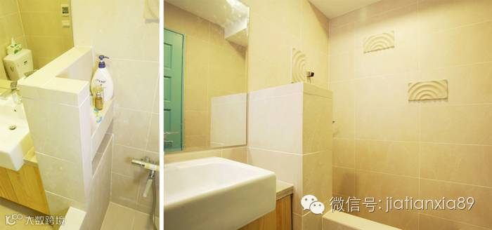延伸风吕,砌了一道小巧并可收纳的短墙,氛围的统一,也让浴室少了外凸的五金配件,更具安全美观特性。