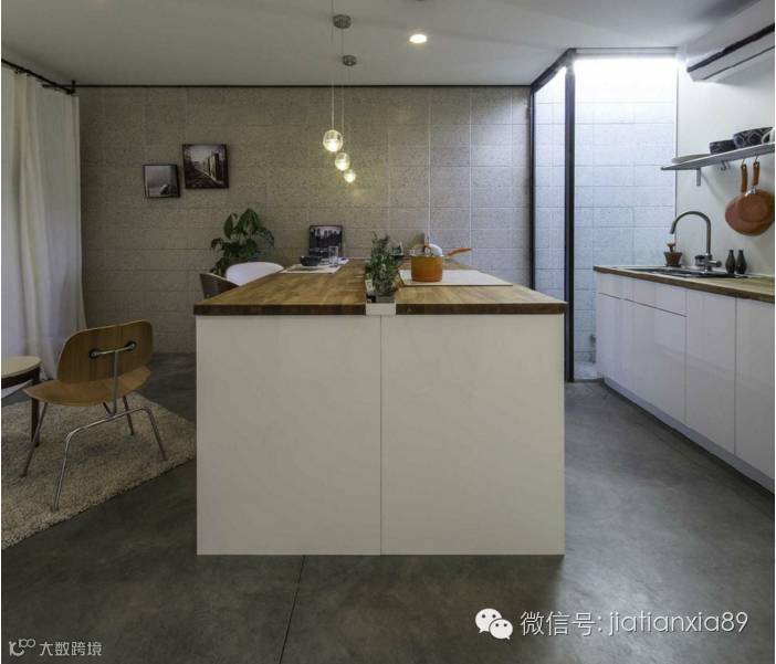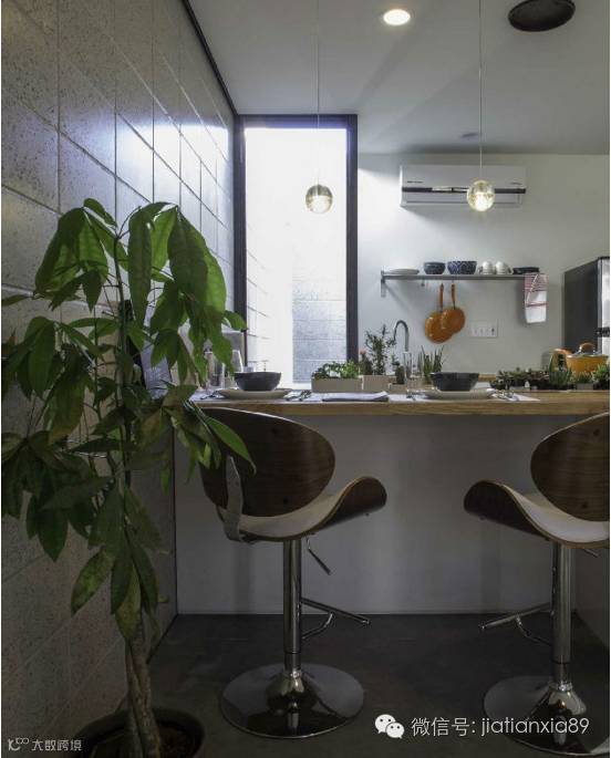 餐厨区角落,开出一处露天小阳台,解决户型不正的问题,还能让室内拥有极佳采光。