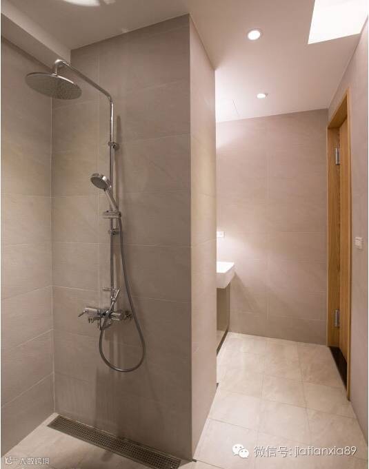 藉由空间的转折,可避免淋浴时让水珠过度溅洒;居中的淋浴设备也能轻松协助屋主,不需额外引水。