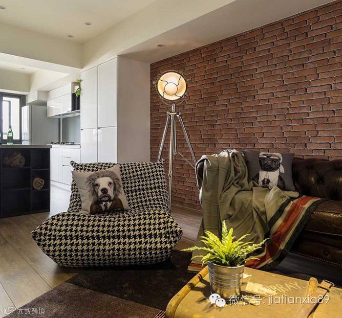 在粗犷的砖墙纹理前,复古款设计家具创造了空间的时尚性格。