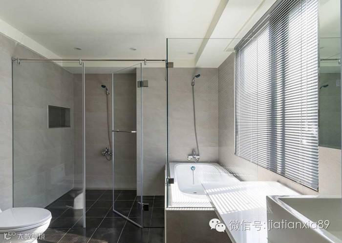 在格局调整后,仅保留一间卫浴,换取采光、淋浴泡澡及干湿分离的宽敞空间。