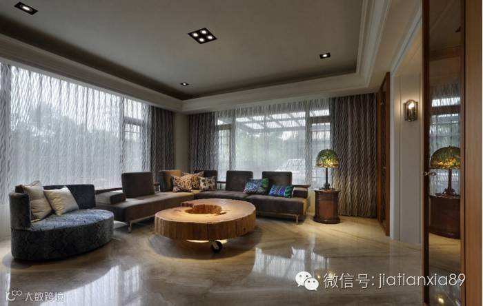 拥有双向采光的客厅,设计师严选实木造型茶几画龙点睛出设计主题。
