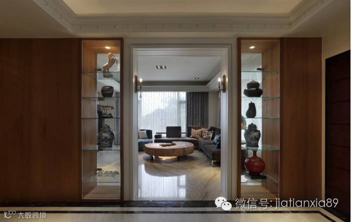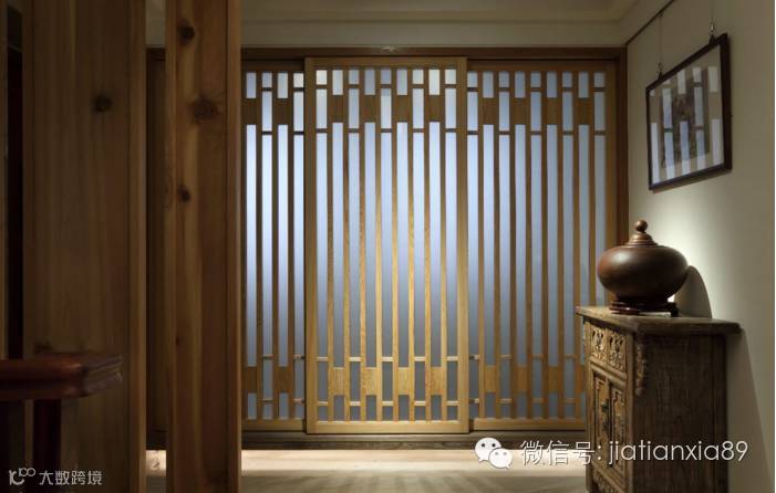 屋主的精品收藏罗列在门斗两侧,增添入内动线的艺术气息。