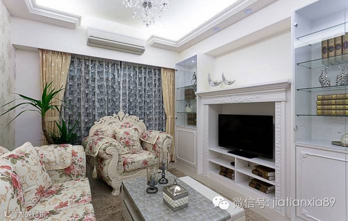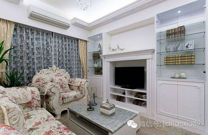 浪漫的古典家具与壁炉电视墙相对,呈现女主人梦想中的浪漫居所。
