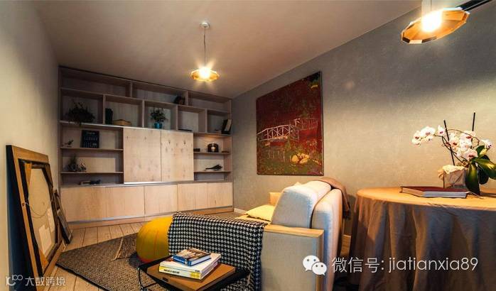 舍弃门体结构,零距离连接屋主最爱的艺术创作空间,同时也可作会客区,空间虽小但温馨十足。