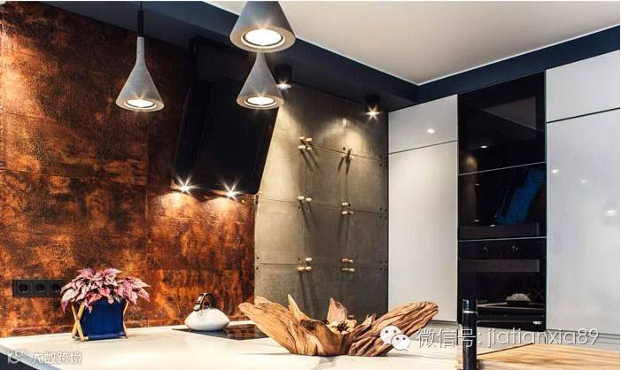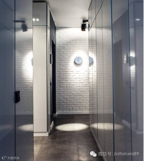 黑色赋予空间无限的遐想,视觉尽头处,以美式乡村风白色砖瓦墙呈现,与周边黑色端景形成强烈对比。