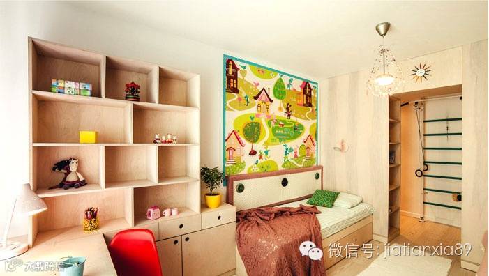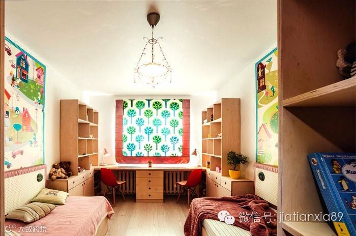 次卧设计成双人式,室内颜色鲜明亮丽,每个空间都符合对称美学,传达视觉上的修整舒适。