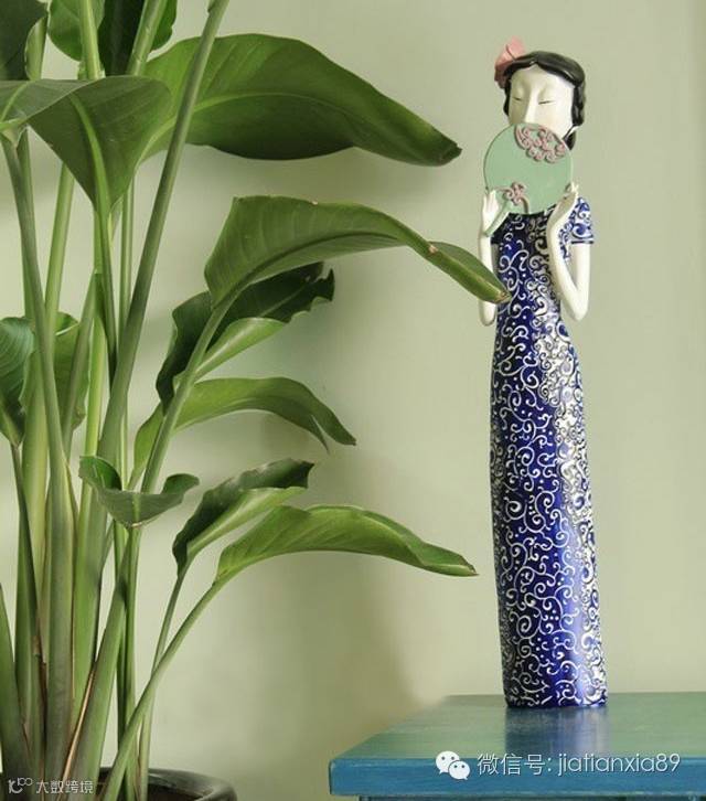 电视柜旁绿意盎然的绿植旁,一个巧笑倩兮的民国美人陶瓷,那样的别致典雅和充满艺术气息。
