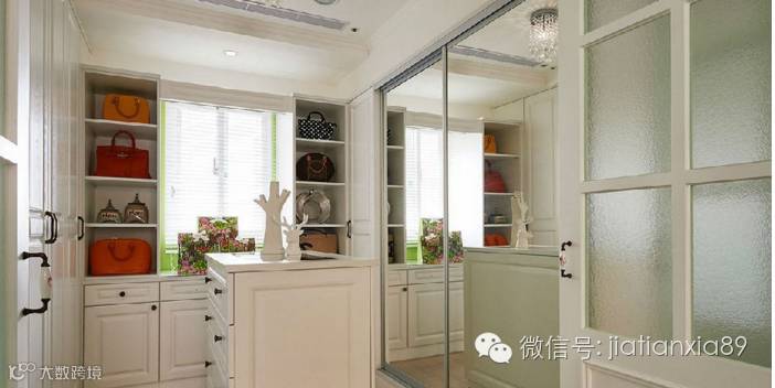 功能完善的主卧更衣室,因应女主人需求,特别贴心规划了精品柜,用以收纳及展示珍藏的饰品、包包。