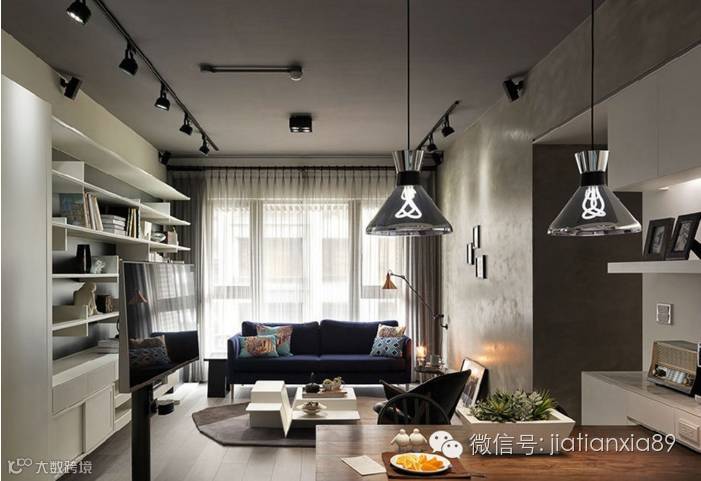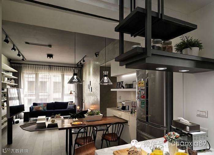 屋主夫妇期待的现代工业风,设计以深色调为基础,缀点设计感语汇增添品味质感。