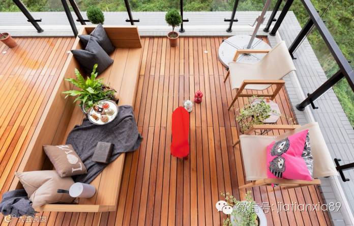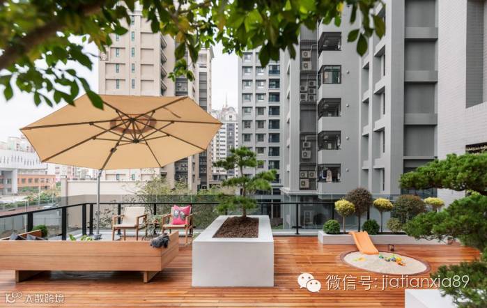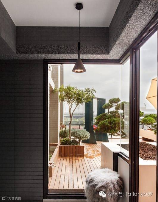 石砌的大盆栽纳入丰富绿意,同时为阳台的功能使用作出区分。