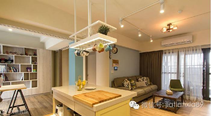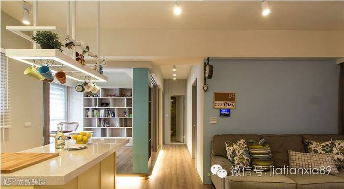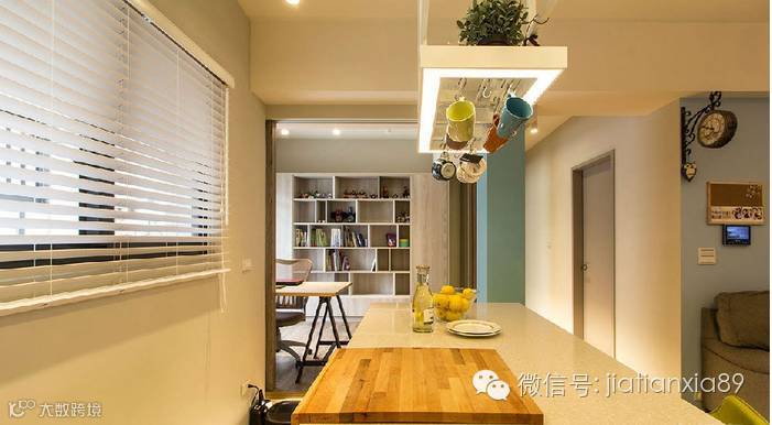 设计师局部挖空假柱外侧,规划为可随手放置小物的造型柜。