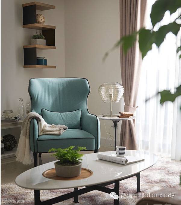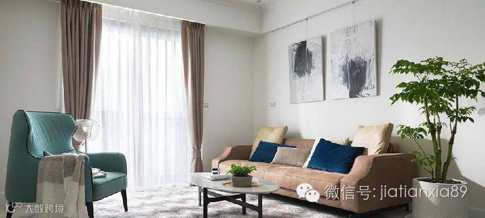综观整个客厅,设计团队极尽简化硬体设计,自然地呈现空间放大感,比如石材这次只用于视听柜,电视墙选择了大片留白的方式,使客厅显得更为清爽敞阔。