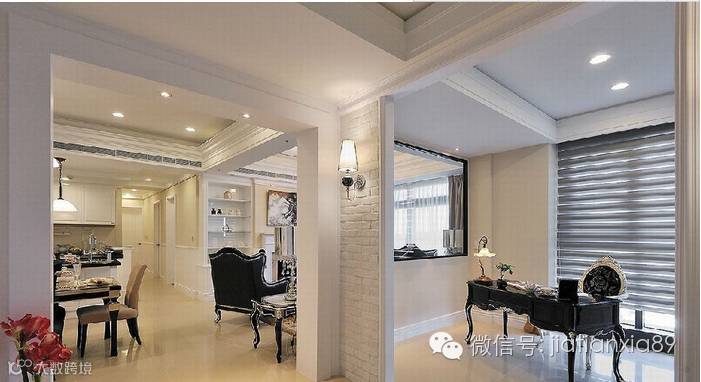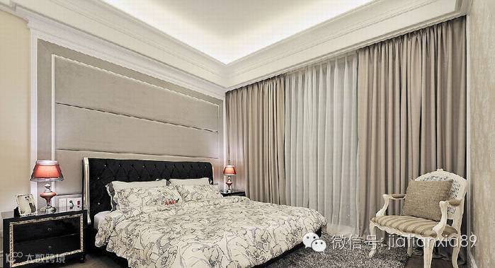 "利落精简的线条笔触,搭配典雅温馨的色彩计划,融合居者自身的个性偏好,成为风格地道的美式古典精品。设计师利用大面积的落地窗,令空间变明亮,也提供了视野开阔的迎客空间。"