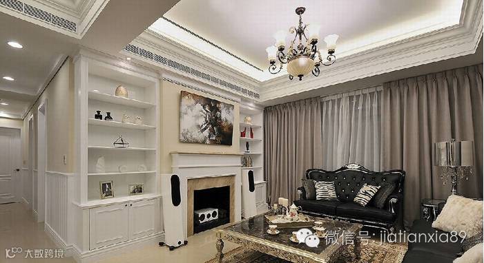 在浅色调的主题构图中,带入了美式风格不可或缺的壁炉元素,让空间显得更有层次亮点。