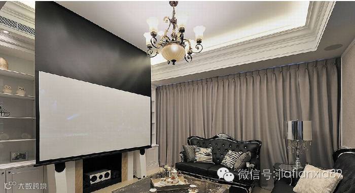 考量到将电视移除后,可能会有的视听需求,设计师以升降式的投影布幕规划,创造出微妙的功能弹性。