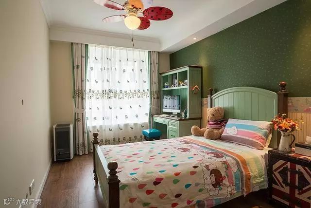 儿童房也是比较花心思的地方,从挑墙纸开始,这一面墙就用三种不同的墙纸搭配起来的。