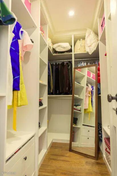主卧的右手边一扇门里面就是衣帽间,衣帽间比较的乱,请大家忽视,随便看一看吧。