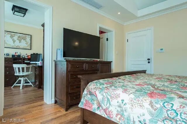过道右手第二间就是老人房,HH全实木家具,简美的风格显露无疑。