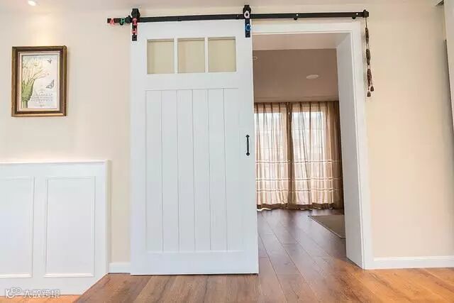 那我们就先从活动室开始吧,活动室门口的门是美式标准的谷仓门。