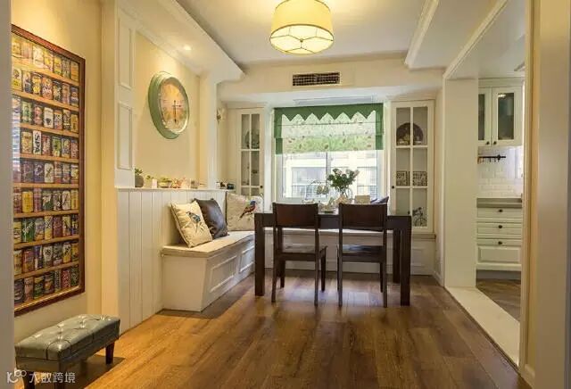 壁炉的左边是餐厅,美式的卡座展现的淋漓尽致。