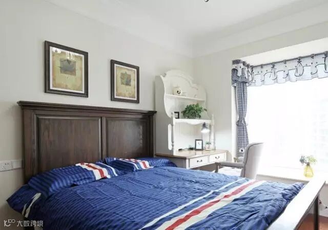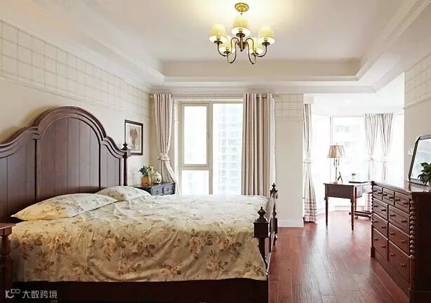 整个家有三间卧室,一主卧两次卧。卧室最吸人眼球的就是经典的美式风格大床,展现美式风格特有的厚重感。值得一说是,因为装了地暖,卧室里都采用了耐高温的复合地板。