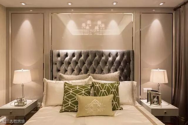 堂皇大气的卧室墙与明亮的灯光效果,加上写意的飘窗,让这个卧室更有情调。
