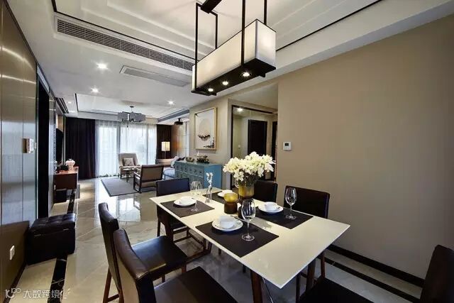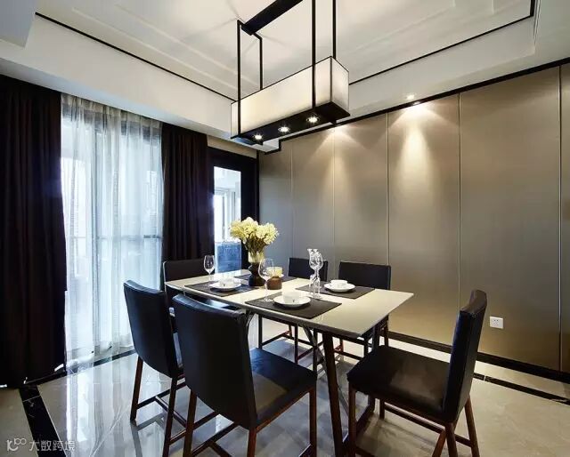 ▲ 餐厅背景同样采用硬包装饰,只是造型要更简单