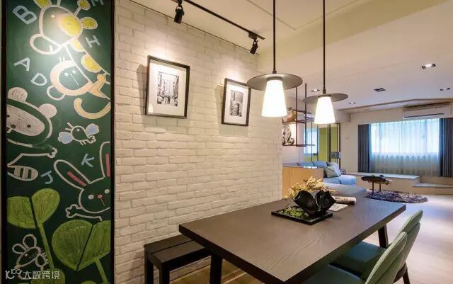 ▲文化石墙妆点出微商空气息,加上旧有黑板作為留言板机能,以现代时法保存过往记忆。