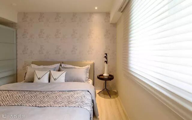 ▲简约俐落的空间配置,仅以造型阅读灯与床边桌增添设计感,拉下卷帘即可保留隐私性。