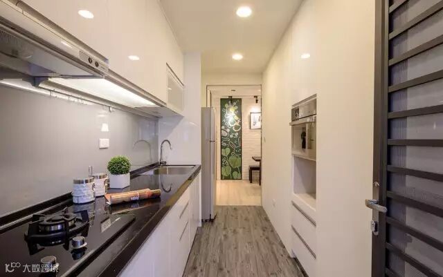 ▲厨房、利用翻整过的畸零区块安排电器柜,连大型冰箱也有了妥适的置放空间。