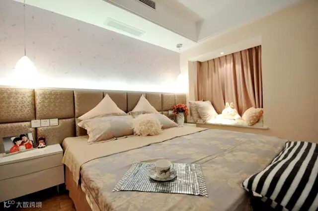 ▲在主卧房里,以花卉壁纸柔和卧眠情境。