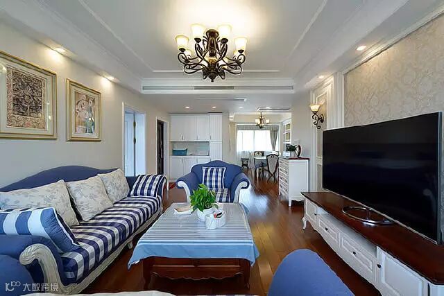 没有买现在流行的亚麻色或者是皮质的美式沙发