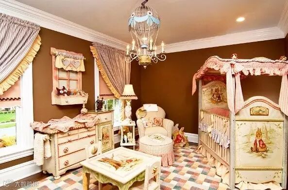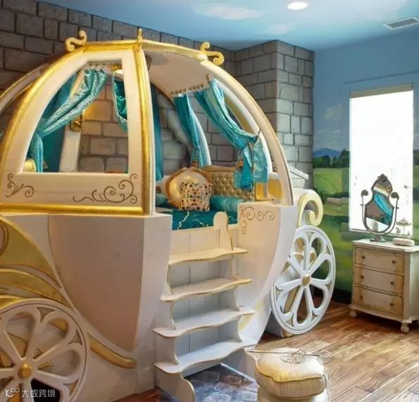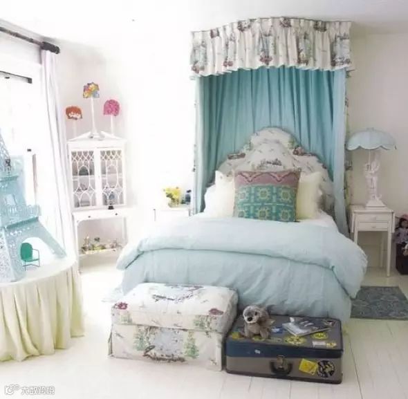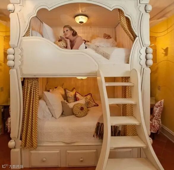 精致的双层床甚至做出了床边纱幔的图案,太美了!