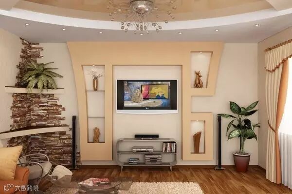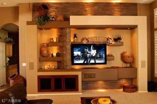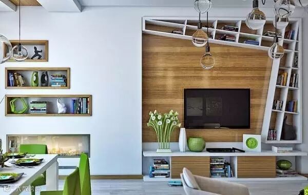 电视墙轻轻松松变书架,不仅避免了单调,还多了好几个功能。