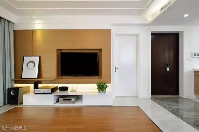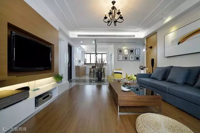 整个客厅没有什么夸张的色彩,单纯的木色,将整个客厅区域装饰的简洁大方。地板中央以深木色的地板替代了传统的客厅毯,清晰可见的木质纹理,仿佛记录着生活的点点滴滴,温馨感悠然而生。
