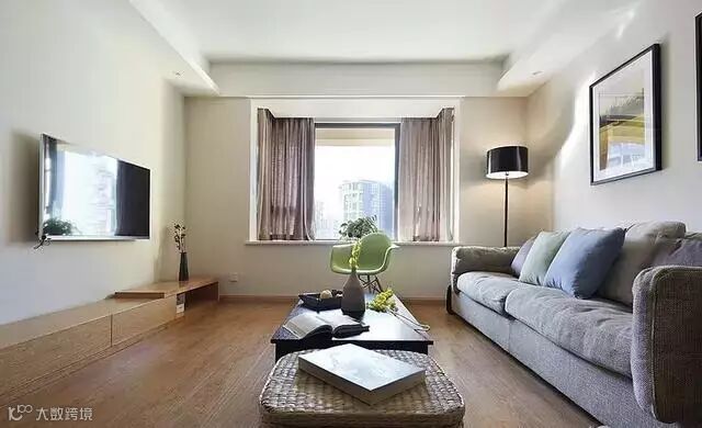 灰色配上原木色很耐看,简单的家具,整齐有序的感觉。
