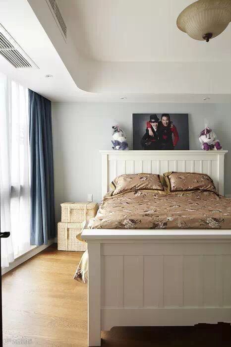 主卧室有点偏于美式风格,椭圆型的造型顶恰到好处。主卧并且由于光照足,所有颜色的饱和度也很高,体现出色彩最绚烂的一面。