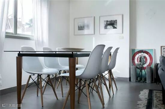 简约风格的桌椅搭配清新自然,这里也可以作为工作空间。